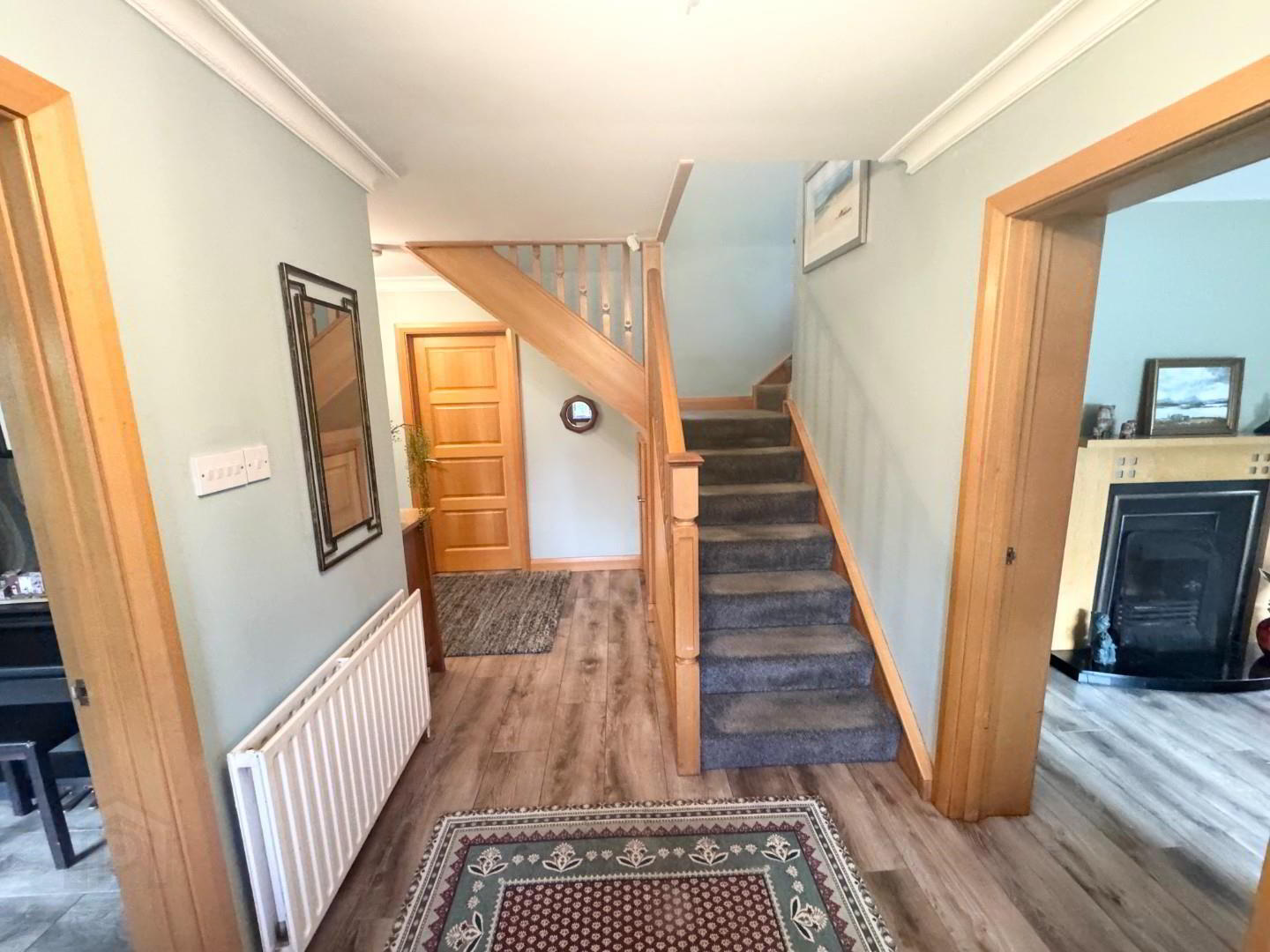- Solid oak staircase with carpet to landing