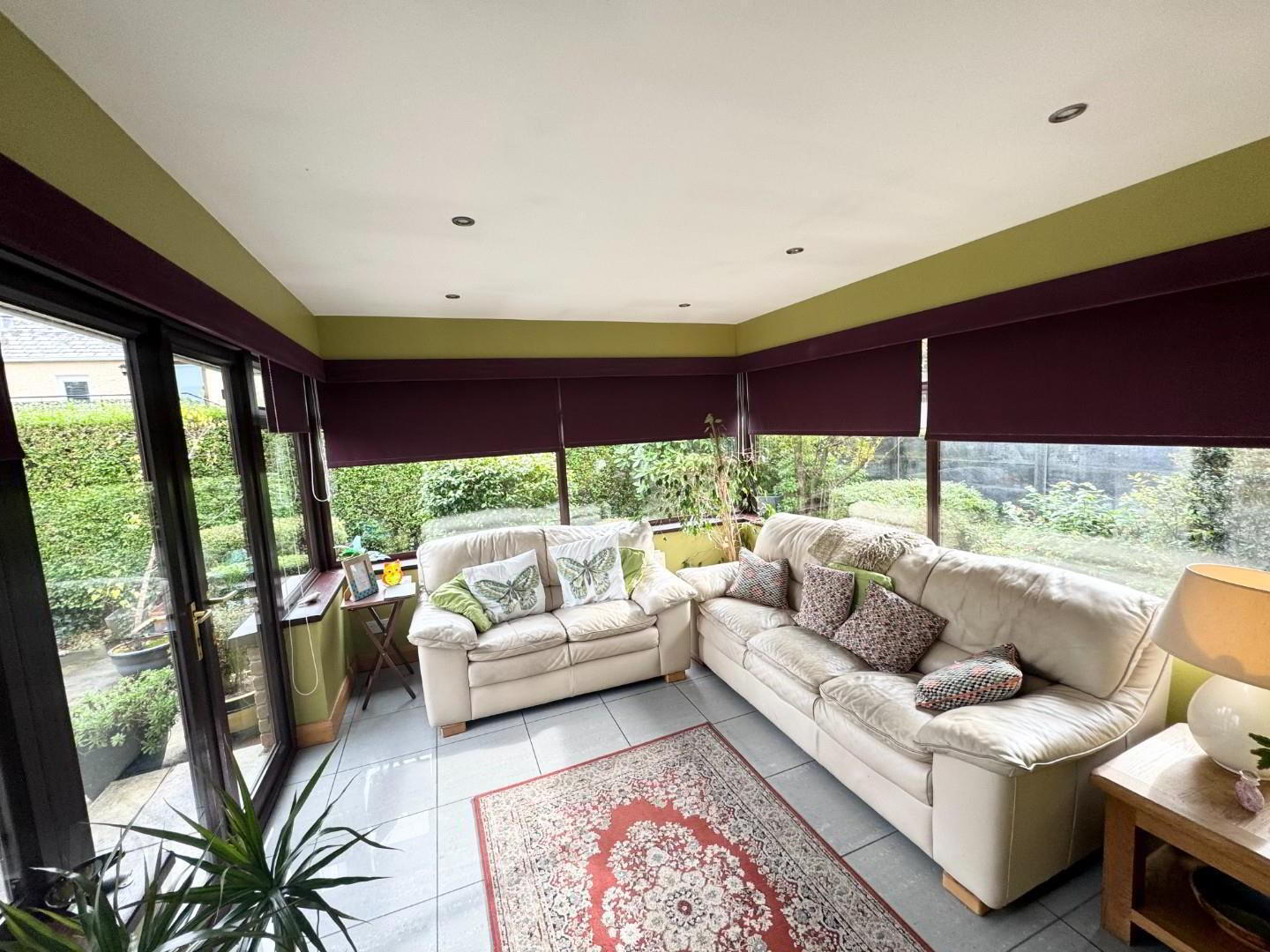 - An extension of the kitchen with double doors to south facing patio, fully tiled floor and recessed lights.