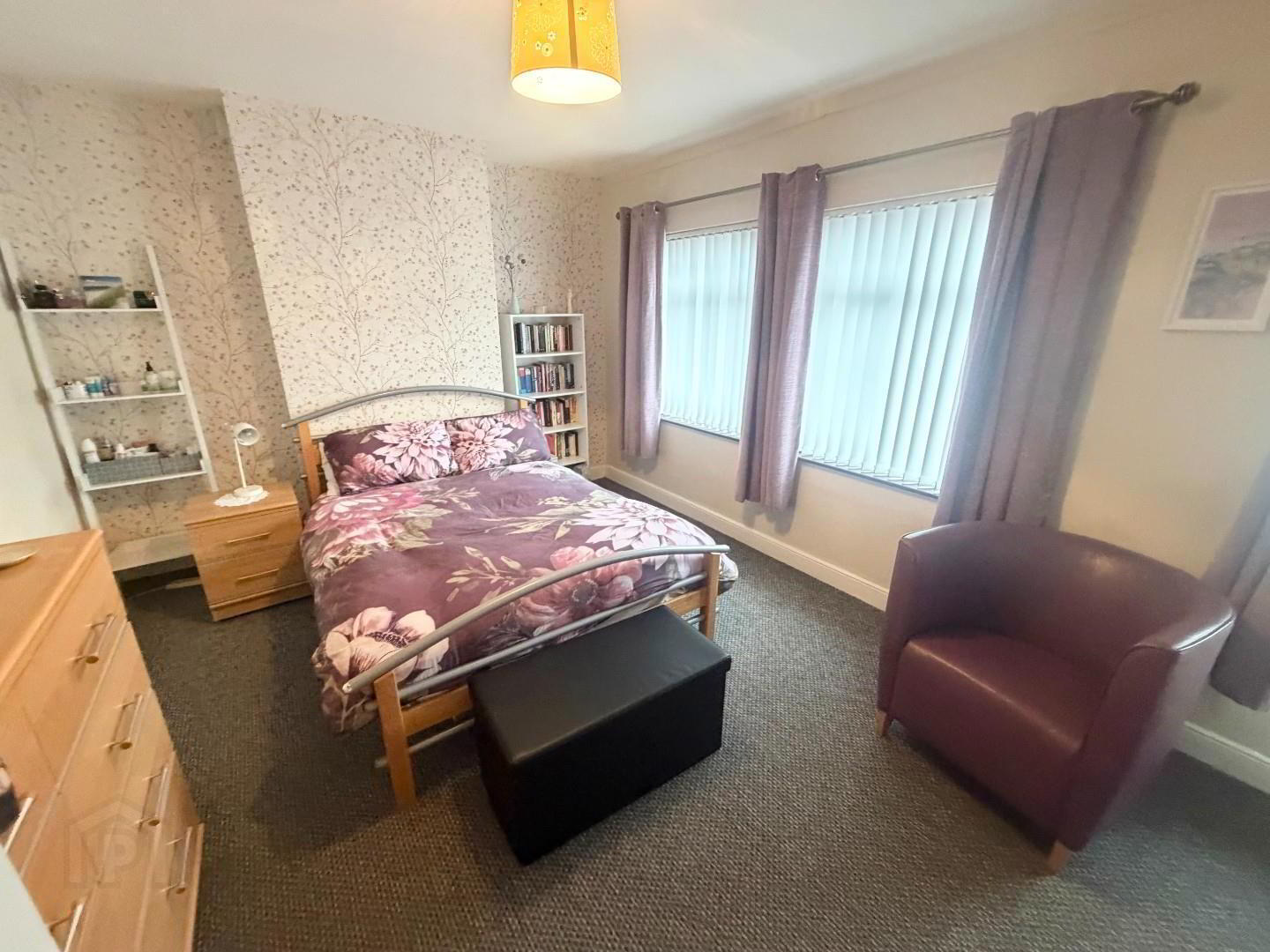 - Double room with carpet flooring and robe.