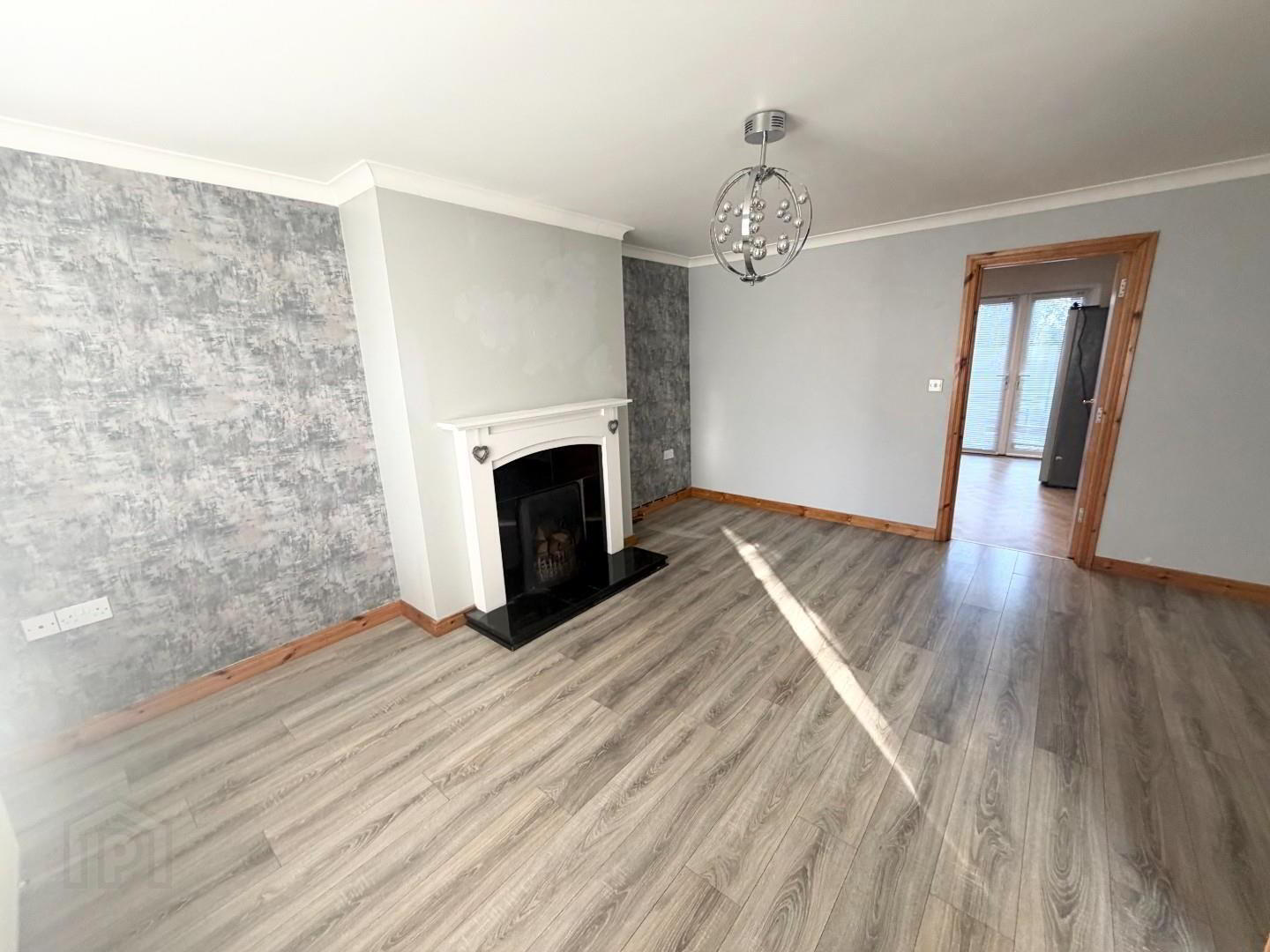 - Large living room with open fire to include wood surround and tile inlay and matching hearth, ceiling cornice.