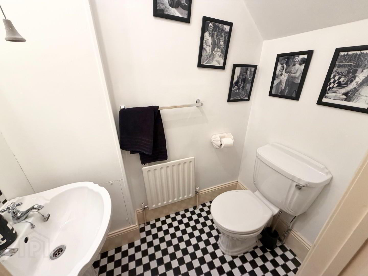 - Cloak room with LFWC, pedestal wash-hand basin, tiled floor and extractor.