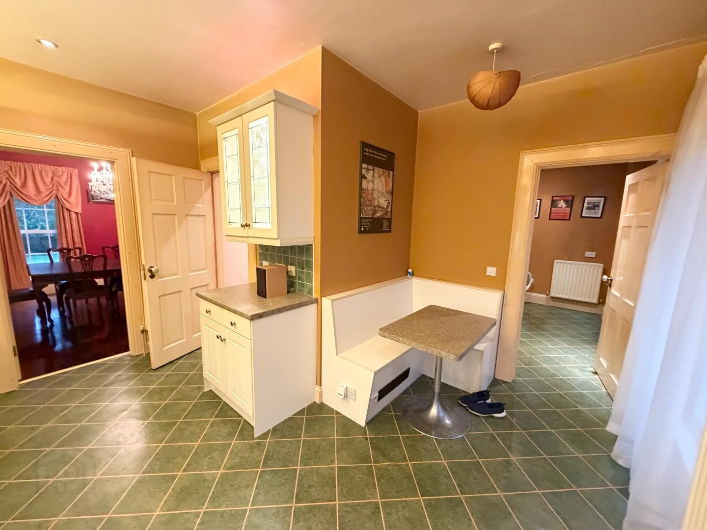 - Large room off kitchen for formal dining, ceiling cornicing, solid wood floor. recessed lights and central over table light.