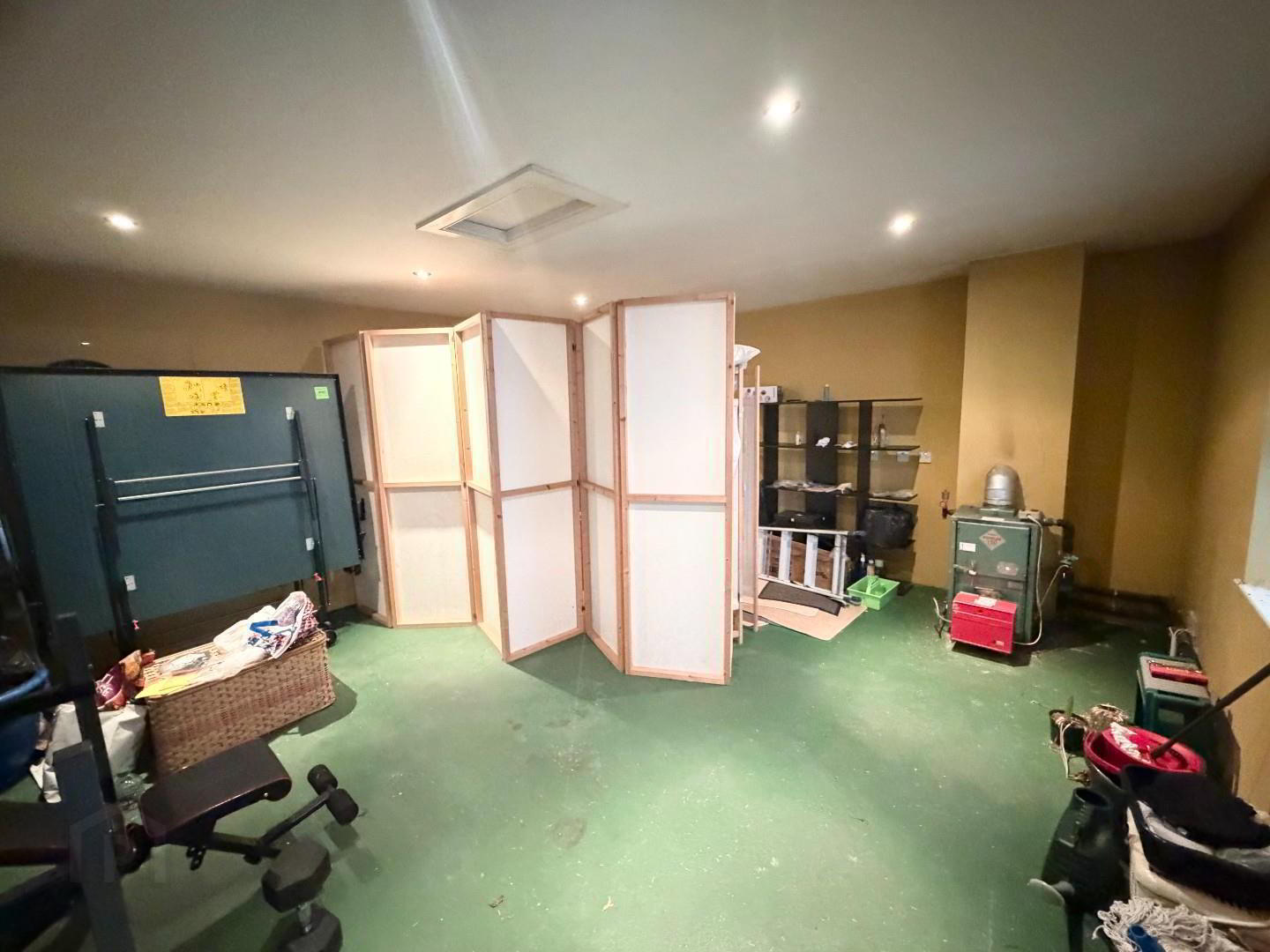 - Large garage with roller door, painted flooring, oil boiler very new looking, side door to garden. light power, recessed lights, attic storage.