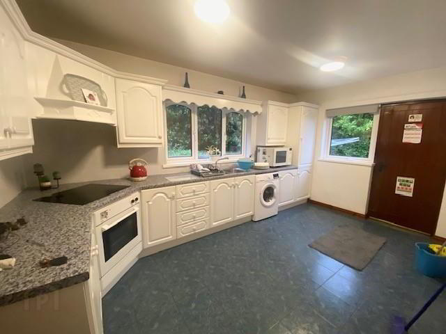 - This spacious bright kitchen has a modern kitchen with high and low level units, stainless steel sink and drainer, Integrated electric hob and oven with a stainless steel extractor above, integrated Fridge Freezer & washing machine. Fully tiled floor, part tiled splash back and a door to the side garden.