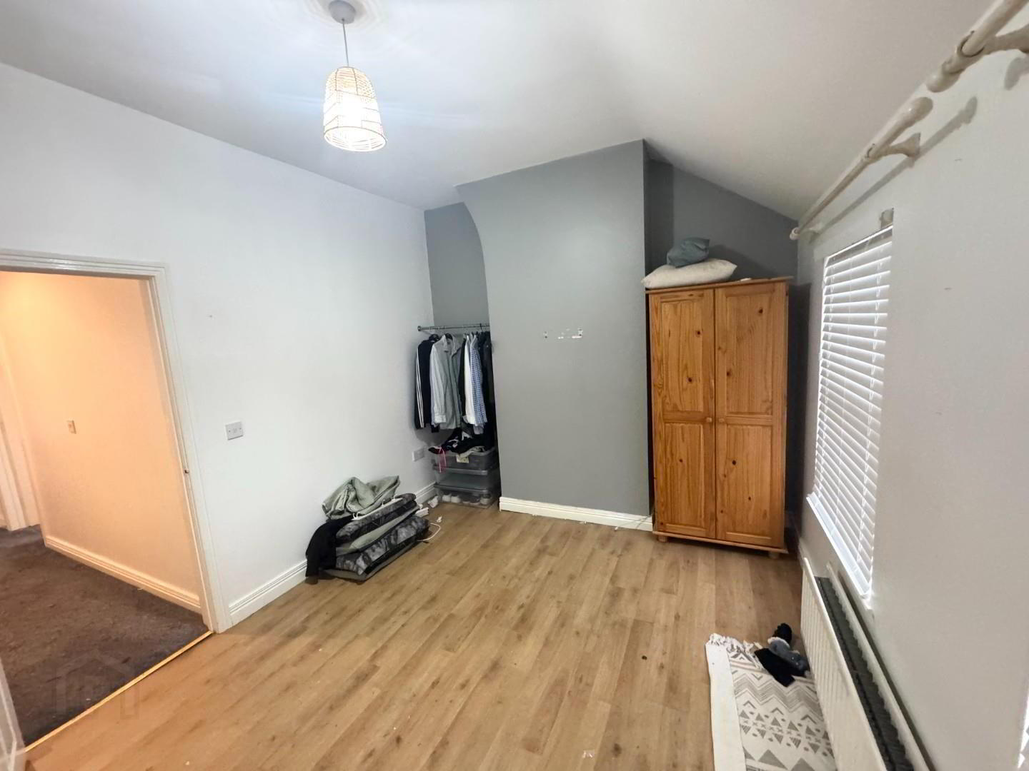 - This spacious double room has laminate flooring and open fire with cast fireplace and slate hearth.