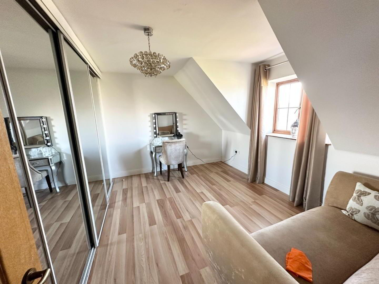 - Double room with laminate flooring, Built in mirror robes and dormir window with city views